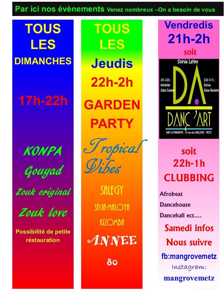Vous avez envie de rythmes à couper le souffle, d’une bonne ambiance et d’un cadre moderne ? Chez le « MANGROVE Bar Metz », vous êtes alors à la bonne adresse. Visitez notre bar moderne et plongez dans une ambiance de vacances sur fond de décibels endiablés tout en savourant de boissons savoureuses. Nous organisons régulièrement des manifestations karaoké et musique live qui garantissent une soirée inoubliable.